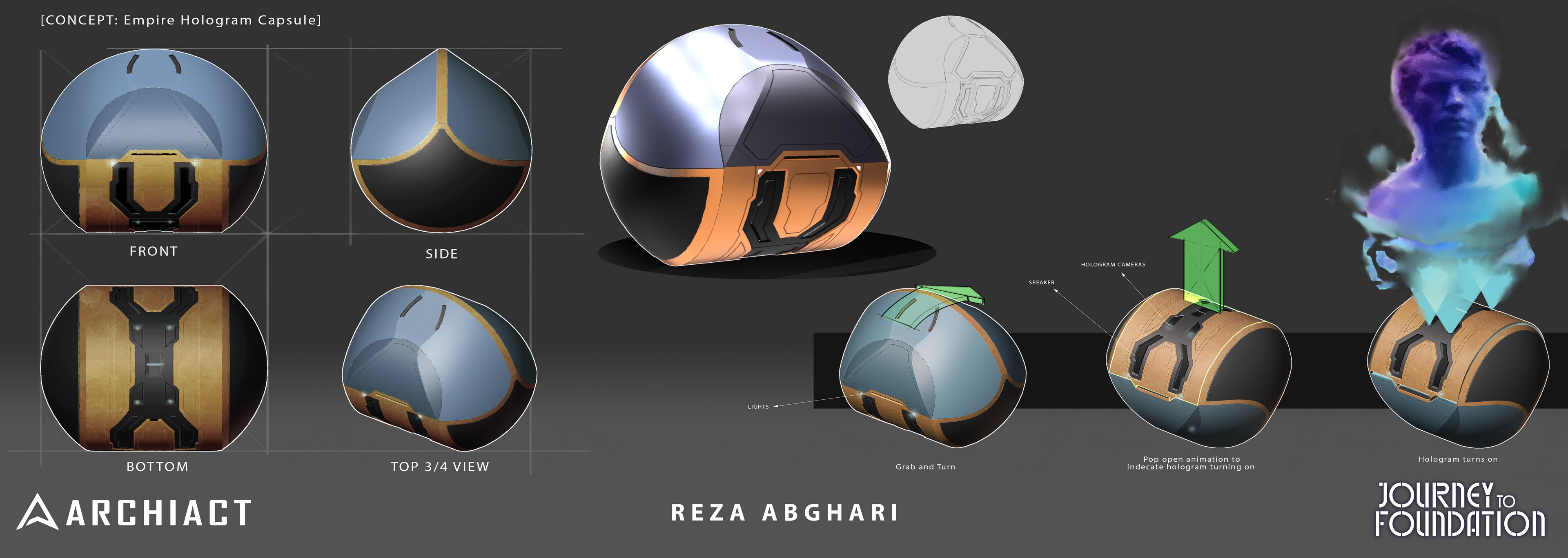 The Hologram Capsule concept for Journey to Foundation was designed for the Empire faction to provide players with immersive insights and aid navigation in the game’s VR world.